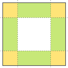 Каждая рамка имеет9областей:4угла,4стороны и центральную область. Для заполнения этих областей браузер должен нарезать картинку для рамки на9частей. Когда браузер не знает, как это сделать, он просто размещает картинку по углам — мы видели это в предыдущем задании.